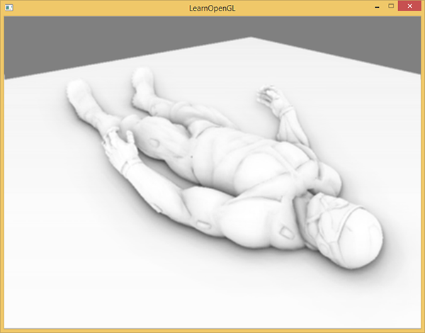 可见,环境遮蔽产生了非常强烈的深度感。仅仅通过环境遮蔽纹理我们就已经能清晰地看见模型一定躺在地板上而不是浮在空中。