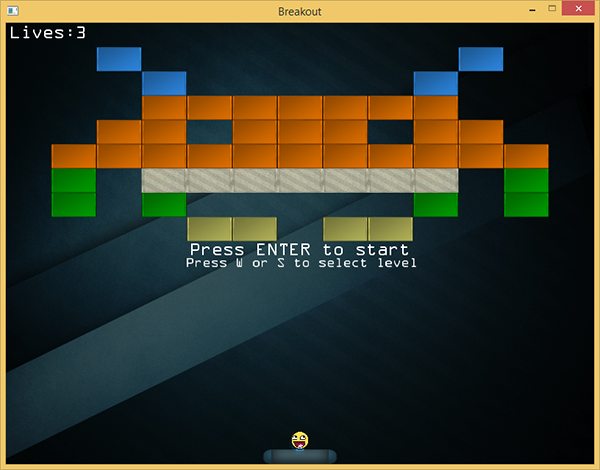 允许玩家选择关卡并不难。我们要做的就是当玩家按下’w’或’s’键时分别增加或减小game类中的变量Level的值: